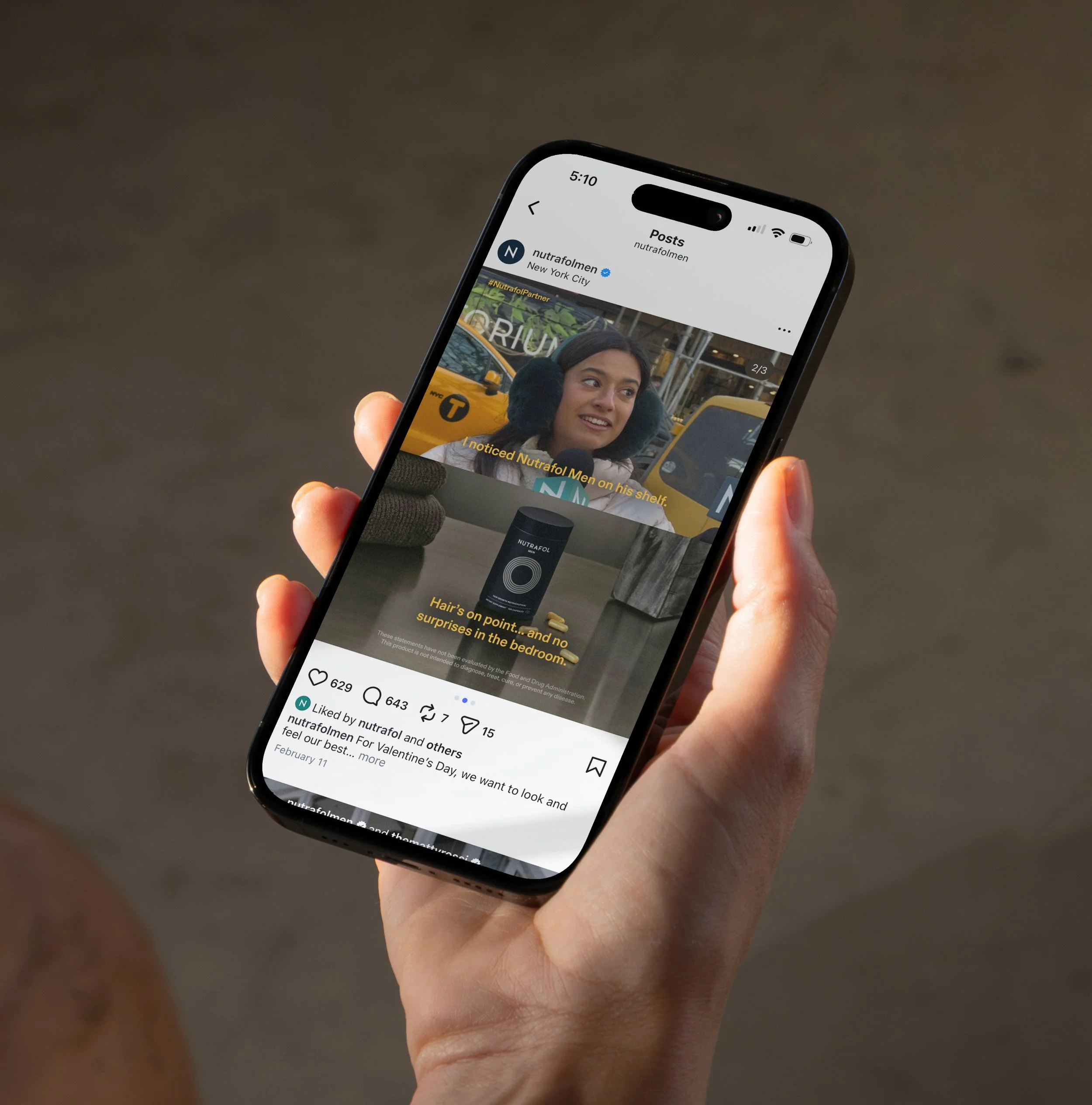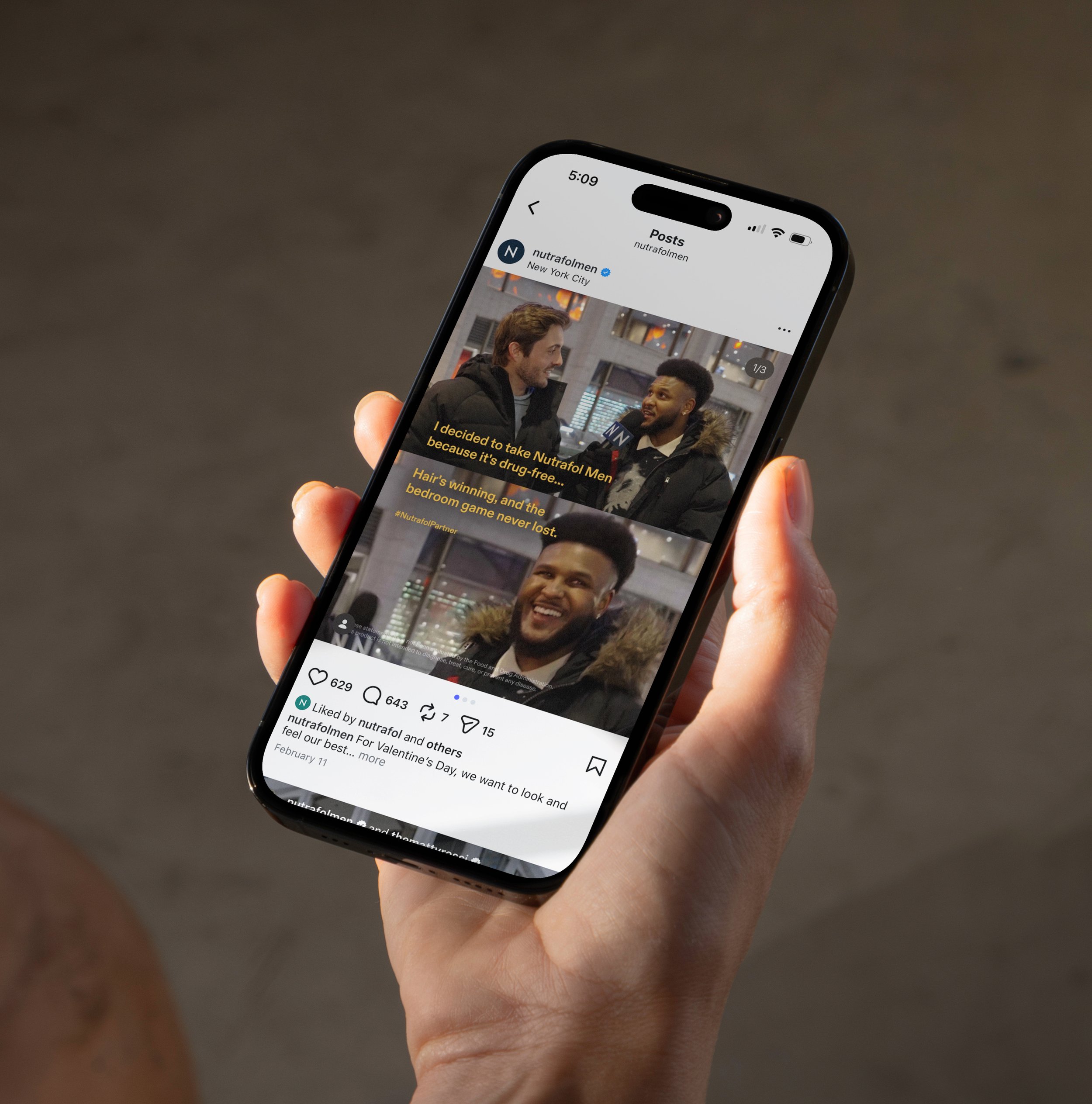 Leading the charge on Nutrafol’s first real Valentine’s Day moment, ‘Pitch a Tent’ evolved into a social-first moment living across Men’s, Women’s and gender neutral audiences and reframed hair health as something that fuels real confidence and attraction. Answering with bold, wit and culturally relevant creative, this campaign unexpectedly puts the brand right back in the viral, share-worthy spotlight by flipping the script that science-backed brands can still have fun. The campaign launches on the ground in New York City, beginning in Central Park, with a dedicated full-day shoot designed to capture elevated, in-the-streets content that can flex across organic and paid.